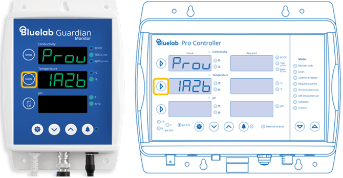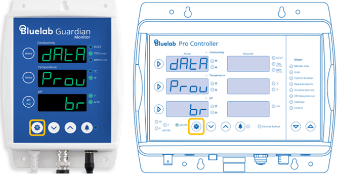 On the Bluelab Guardian Wi-Fi/Bluelab Pro Controller Wi-Fi short press the “Settings” button to open the settings menu.